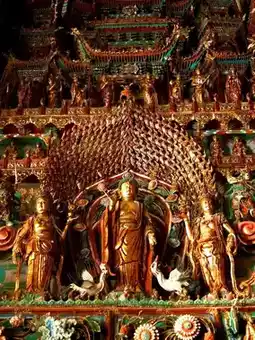 Explore the secret beams with thousands of suspended sculptures and listen to the guide explain the Ming Dynasty craftsmen's "honey gold leaf" technique