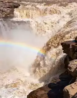 Wear a scenic area raincoat and dive into the mist to see a rainbow spanning the sun.