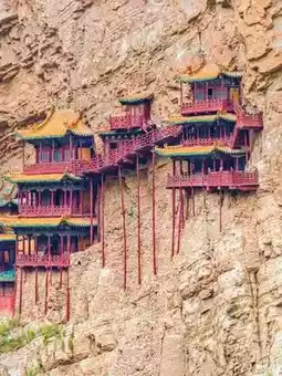 3⃣ Hanging Temple: A "sky pavilion" perched on a cliff—enter at your own risk if you’re afraid of heights!