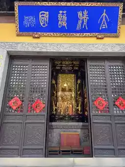 The air is fragrant with sandalwood incense as devotees and visitors move through the temple's peaceful courtyards. In the main hall, the gilded statue of Sakyamuni Buddha radiates tranquility, while monks in saffron robes chant scriptures in rhythmic harmony.