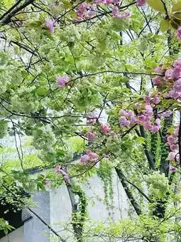 We were thrilled to discover the unusual green cherry blossoms,a rare variety that glowed like jade under the clear blue sky! While most visitors chase pink sakura, these delicate Gyoiko green blossoms offered a magical surprise, their subtle yellow-green petals shimmering in the sunlight. The late-blooming Fugenzo cherry tree were also in full splendor, their fluffy pink flowers creating a dreamy contrast against the park’s ancient pavilions. Strolling past the Second Spring Under Heaven and Huishan Temple,we found pockets of tranquility where we could admire both the quirky green blooms and classic pink Sakura proof that spring’s beauty comes in many shades.