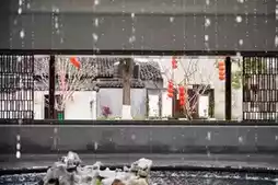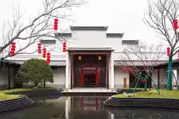 Proceeding from the left, you can see the hotel gate, which is a white wall and black tile building full of the charm of Jiangnan water towns. The quaint architecture really has the meaning of an ancient mansion.