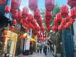 ▸ Bamboo lanterns hang high as spotlights! The seal of the Chinese character "Fu" burns the black tiles, the tassels throw out beads of developer in the evening breeze, and the teahouse glass suddenly shows double exposure.