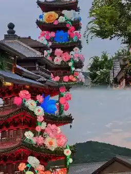 A zen-themed town perfect for hanfu photos. Caption: "Oops, time-traveled." The nighttime light show is stunning, but crowds outshine the lights—go early or you’ll only see the back of heads.