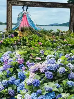 -💐 20,000 hydrangeas create dreamy blue/purple/pink/white photo spots