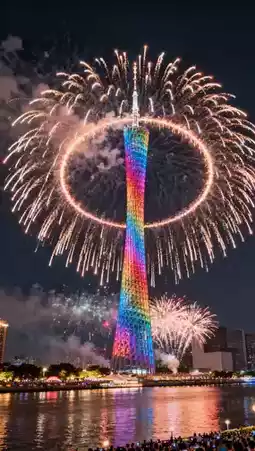 Nanchang’s fireworks feature a "dual-site linkage," with river fireworks at Laoganzhou waters and building fireworks on the 303 Twin Towers launching simultaneously, accompanied by drone formations for a high-tech feel.