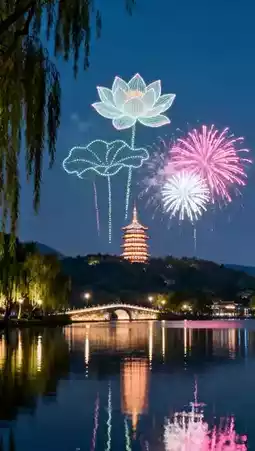 • Highlights: Fireworks bloom over the lake surface, with "waterfall fireworks" and "peony fireworks" reflected in the water, perfectly echoing the Changchun Bridge and Cherry Blossom Embankment on the shore. The evening breeze carries the scent of osmanthus, offering a triple sensory feast of sight, sound, and smell.