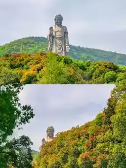 The Lingshan Grand Buddha is not just a statue but a Buddhist cultural theme park. It’s perfect for photos on sunny days, with a stunning mix of Western-style Brahma Palace and Chinese-style Buddhist pagoda!