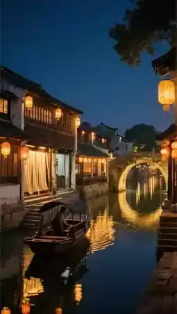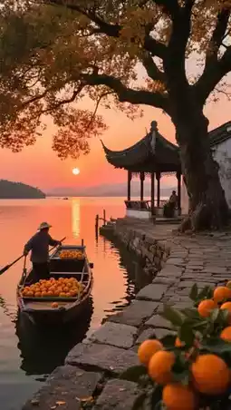✔️ Baijian Building: At 6 a.m., smoke rises, black-sailed boats break reflections, a living ink painting