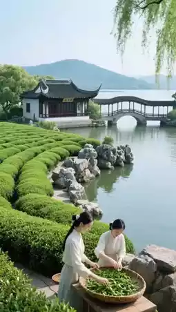 ✅ If in autumn, pick a fresh white sand loquat or new buds of Biluochun tea by hand