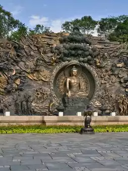Don’t miss the nearby Brahma Palace and the striking Nine Dragons Bathing Sakyamuni performance if you have extra time. Along the way, look out for serene carp-filled ponds and leafy paths that make peaceful pit stops.