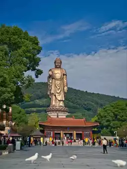 Towering at a jaw-dropping 88 meters, the Lingshan Giant Buddha is a spiritual icon you literally can't miss—it's visible from far outside the scenic site! Surrounded by lush greenery and set against rolling hills and cerulean skies, it's a Wuxi must-see for travelers seeking wisdom and Insta glory.
