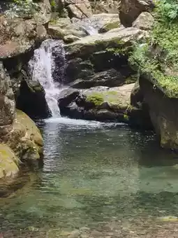 2️⃣ Mandarin Duck Waterfall: Keep walking forward to reach the Mandarin Duck Waterfall. Two waterfalls cling closely like intimate lovers, surrounded by lush trees. Find a rock to sit on, dip your feet in the cool water, and feel the heat melt away. Everyone had a blast playing here.