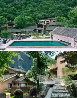 Built on the foundation of an ancient village, the homestay features walls of rammed earth and stone, topped with black tiles, preserving the raw textures of She ethnic eaves and beams. Moss-clad stone walls whisper tales of time. Scattered across the hillside are standalone courtyards, each with its own charm: cliffside villas overlook seas of clouds, quadrangle houses embrace courtyard water features, and lawn canopies mirror the starry sky above the infinity pool. As night falls, twinkling lights amplify the romance.