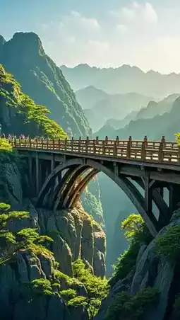 Qingyun Bridge: Check in at the hanging wooden bridge, capture panoramic shots of the canyon