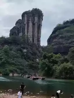 Walk about 2k to the Yunv Peak Viewing Point (you cannot climb). There are also stone slabs and stone steps along the way. Tea plantations can be seen from time to time in the valley. The Yunv Peak Viewing Point you finally arrive at is right next to Jiuqu Creek. The Yunv Peak and Dawang Peak are located on the left and right sides of the opposite bank. There are many parents bringing their children to fish and play in the water by the creek, and you can also see busy bamboo rafts passing by from time to time.