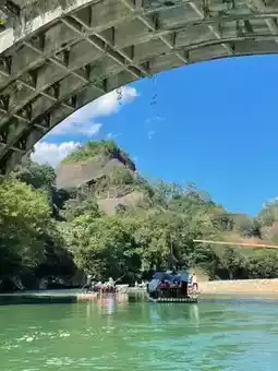 The rafting journey spans approximately 9 kilometers, starting from the shallows near Zhangyan and ending at Xingcun Town at the foot of Qiyun Peak, taking about 90 minutes in total. As you board the rustic bamboo raft and drift gently with the current, the scenery along both banks unfolds like a poetic masterpiece. From the first to the ninth bend, each section boasts unique vistas: the lifelike Upper Water Lion Rock and Lower Water Turtle Rock, the breathtaking beauty of the sixth bend, the expansive views of the fifth bend, and the deep, steep gorge of the second bend.