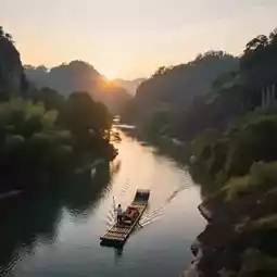 Glide down the Nine-Bend Stream on bamboo rafts🚣♂️, where crimson Danxia cliffs carved by nature reflect on jade-green waters - every view is a memory card killer! When listening to boatmen's folktales, don't forget to take out a 5-yuan bill for that iconic currency backdrop photo at Fifth Bend📸 - instant social media content! Charge up Tianyou Peak at dawn to see clouds dancing between mountains while the stream ribbons through valleys, straight out of a fantasy drama🌅!