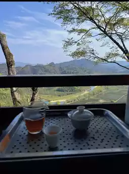 Slept in, then the kids wanted to collect stones by the Nine-Bend Stream. After a relaxed morning, we headed to Baiyun Temple (you can also take a taxi to the foot of the mountain). The hike up through tea fields is a bit steep, but the view of the Nine-Bend Stream from the temple is breathtaking. Highly recommend bringing your own tea—the temple has a viewing platform with hot water and tea sets for self-service! Non-drivers, leave plenty of time—taxis are scarce here (learned that the hard way). We almost missed our train after failing to get a taxi and had to flag down a local’s car to reach a spot where we could hail one.