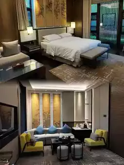 Stepping into the resort, you're instantly healed by the lush greenery! Pavilions, murmuring streams, and dense bamboo forests create a picturesque scene like an ink painting🎋. The room design is absolutely stunning - floor-to-ceiling windows bring the mountain views indoors, and you can enjoy the scenery while soaking in the bathtub⛰️! There are also private courtyard rooms where you can relax on a rocking chair listening to birdsong - pure bliss~🥰