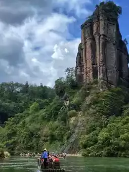 We boarded a traditional bamboo raft, guided by an elderly boatman who paddled while softly introducing the scenery: "Nine bends and eighteen turns—this is the soul of Wuyishan."