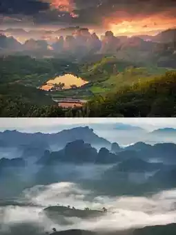 You must visit Wuyishan to overlook the sea of clouds! Morning mist rolls over the mountain peaks,