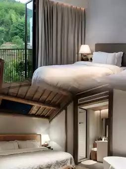 The hotel rooms are clean, tidy and very comfortable. The homestay has a strong sense of design and the renovation of the old house is a good example of the concept of restoring the old as it was. There are 20 guest rooms in total, and most of them have a sloping roof structure. In addition to meeting the practicality of the function, this design can also echo the rolling hills with different pastoral landscapes in four seasons and the natural transition between day and night, truly blending into nature.