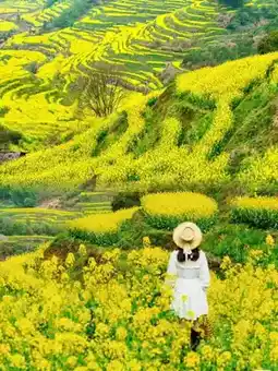 🌼1. Bloom Forecast🌼 👉The blooming period on the plains is from mid-February to the end of March. The rapeseed flowers on the plains bloom early, spreading out in vast golden expanses. Visitors who want to experience the charm of rapeseed flowers early shouldn't miss this🧐. 👉The blooming period for the flowers in ancient villages and terraced flower fields is from early March to the end of April. During this time, the rapeseed flowers in ancient villages and terraces bloom one after another, interspersed with Hui-style ancient buildings, creating a rich sense of layering. This is the peak season for Wuyuan's rapeseed flowers and the best time to view them. It's a breathtaking sight😎. 👉The blooming period for the high-altitude terraced flower fields is slightly later, from late March to mid-April. The Gaoling area has a higher altitude, but this extends the flower viewing period, which is very thoughtful🤩.