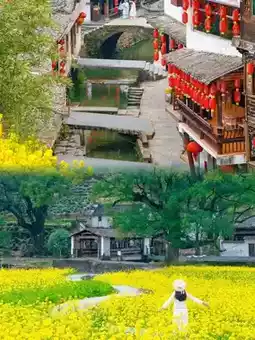 ○ Morning: Stroll through Likeng Ancient Village, with its small bridges, flowing water, and houses. The rapeseed flowers blend with the ancient buildings, as if you've stepped into an ancient painting. It's mesmerizing😵.