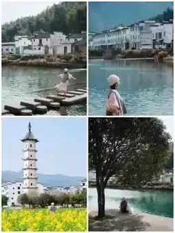 🏮Wuyuan, China 🌼Fengshan Village · Longtian Pagoda Follow the bluestone path into Fengshan Village, where the hexagonal eaves of the 400-year-old Longtian Pagoda suddenly emerge from the white walls and black tiles. The copper bells on the top of the pagoda jingle in the wind, as if telling stories of Huizhou merchants. The steamed rice cakes offered by the village grannies have a tea oil aroma. Enjoy them under the ancient camphor tree before heading to the ancestral hall to watch the elders weave fish lamps with bamboo strips, a traditional craft brought to life.