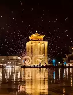 Wunvzhou truly shines at night. Don't miss the molten iron fireworks and fireworks show! Secure a spot early, especially in front of Baoyu Pagoda for the best view of the molten iron fireworks!