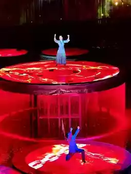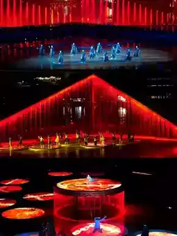 This act is epic! A golden phoenix swoops down as actors soar over the lake on wires, synchronized with laser effects—straight out of a fantasy drama! The crowd went wild 🤣🤣