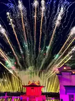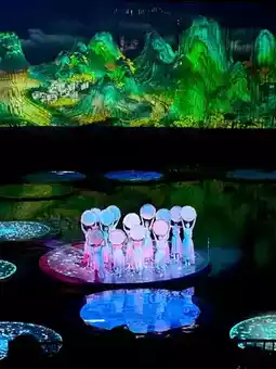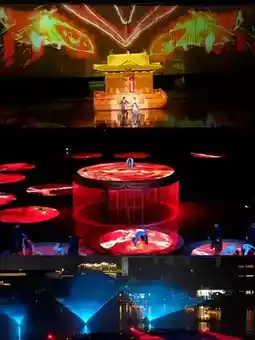A 45-minute immersive Huizhou art spectacle blending light, music, water screens, fireworks, and drones. It tells the legendary love story of Wunv, a celestial maiden, across three lifetimes.