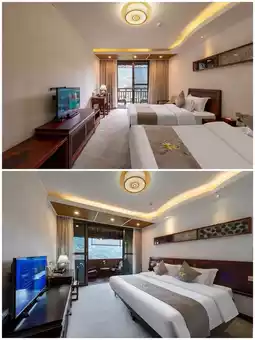 🧡 Nestled along Huangling's snack street, Tianjie Hotel stands with modern architectural lines that contrast beautifully with the rustic tones of the ancient village. From your window, tiered rice terraces and sunset clouds unfold, with distant mountains stretching endlessly and Hui-style houses dotted among the greenery—every season paints a new masterpiece.