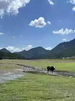 Traveling with the Chinese textbook! This is the filming location for the sixth-grade Chinese textbook, first semester! Cow riding costs 10 yuan per time. There’s also a creek trekking spot further back. When it’s hot, the cows soak in the water. If you want to play in the water, reserve half a day here as well.