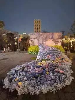 Inside the resort, you'll find beautifully lit replicas of buildings, a library, and a waterside pavilion. Additionally, there are scheduled shows that you can enjoy without needing to buy extra tickets.