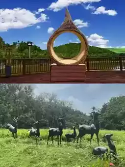 There are unique cartoon sculptures in the hotel park, and there are internet celebrity check-in spots: "Firefly Volcano", "Bird's Nest", "Glass Drifting", etc. 🍁🍁