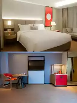 Step inside, and you'll be greeted by an elegant and sophisticated decor that blends modern design with regional cultural elements, creating a uniquely inviting atmosphere. The cozy and comfortable guest rooms are equipped with high-quality bedding for a restful night's sleep, along with smart devices and a well-appointed bathroom featuring separate wet and dry areas—every detail reflects quality. To unwind, you can work up a sweat at the hotel gym or relax in the lounge area with a cup of tea and a good book, easing the fatigue of your journey.