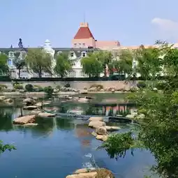 Sunlight reflects off the water's surface, and along the way, you encounter strolling residents and playful children, reminding you of the simple joys of life.