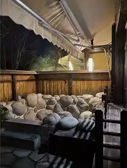 Outdoor hot spring pool, great atmosphere, very private, and a free water change is provided. The hot spring pool can accommodate 6 people.