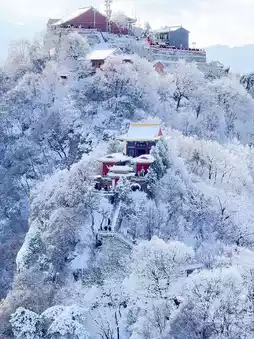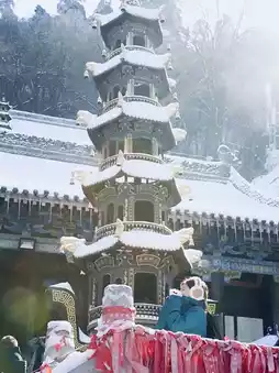 Drive 40 minutes from Xi'an to Nanwutai Mountain to climb the mountain and enjoy the snow 🏔️➕ rime ❄️➕ red walls of the Tiangong Palace. It's close, easy, and beautiful. If you want to see snow, come here!