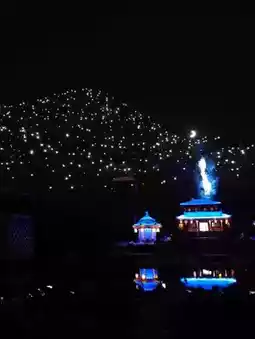 After visiting, take a bus to Huaqing Pool, towards the parking lot out there is a bus directly to Huaqing Pool, Huaqing Pool outside the commercial street, can first eat dinner rest, then return to Huaqing Pool queue waiting to enter, outside the venue for rent jackets and blankets, afraid of cold people recommend renting