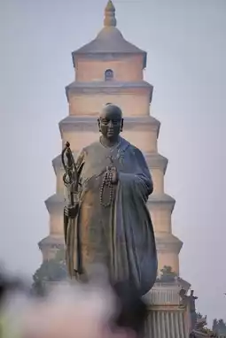 2️⃣Photo taken at the Big Wild Goose Pagoda with the Tang Xuanzang sculpture