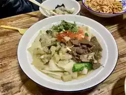 This noodle dish is thick and chewy with a first-class taste. It is served with various ingredients and tastes sour, spicy and delicious. The mutton is cooked tenderly, making it one of the favorite staple foods of the locals.