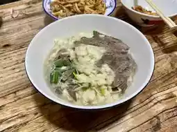 The soup base is fragrant, the mutton is tender, and the steamed bread is broken into small pieces, which goes well with the soup. Coupled with condiments such as hot sauce and sweet garlic, the taste is unique and memorable.
