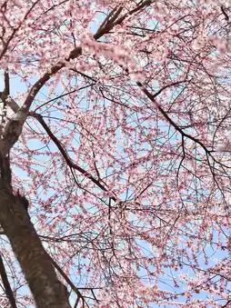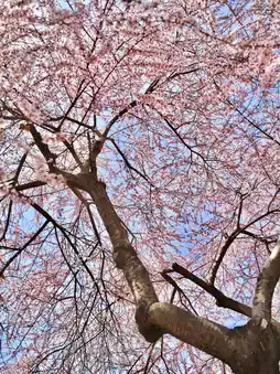You can also shoot from under the tree and take photos of the pink flowers and blue sky through the tree trunk.