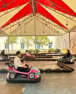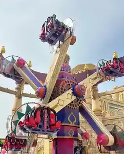Powered: carousel, bumper cars, trains, rotating coffee cups, self-controlled airplanes, Ferris wheels, etc. (child-friendly)