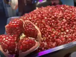 My favorite is freshly squeezed pomegranate juice. They make juice from sparkling, jewel-like pomegranates. The natural sweetness of the fruit is exquisite.