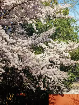 ✨ Somei Yoshino Cherry Blossoms – Snow-white petals against red walls, picture-perfect in every shot.