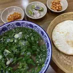 The classic way to eat it is to pair it with freshly baked flatbreads. Soak it in the soup to absorb the broth before eating it. It is fragrant and has rich layers of flavor. You can also directly put the mutton into the flatbread and eat it. It is solid and satisfying!